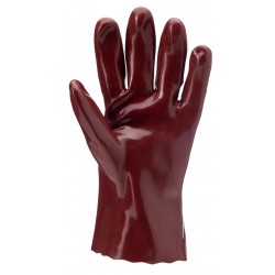 Tissu interlock, 100% coton, coupé et cousu, Enduction totale en PVC rouge, Manchette de sécurité, coupe feston, Longueur 27cm