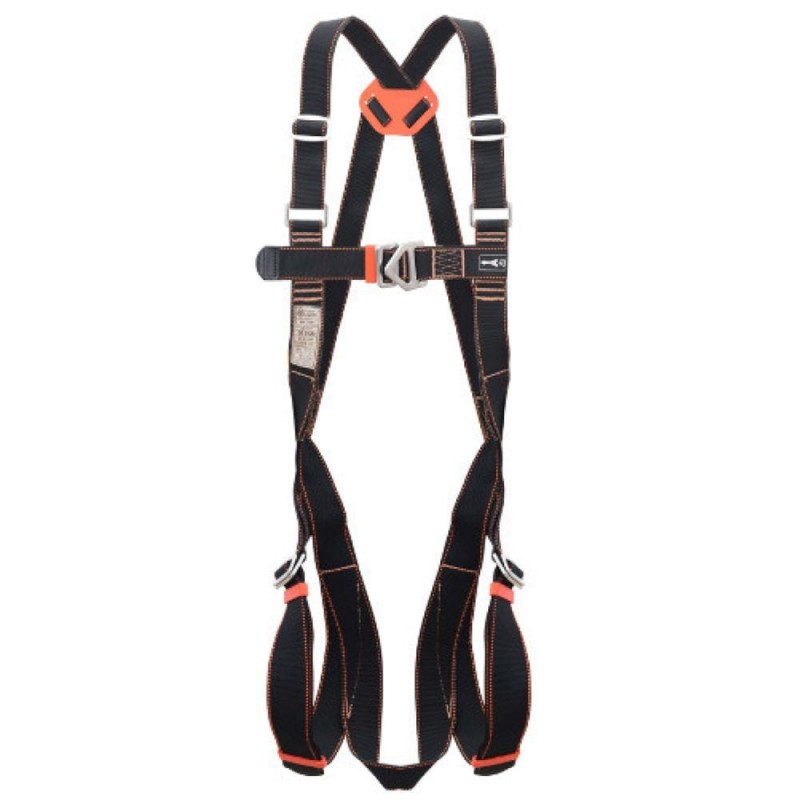 Ce harnais complet grand confort et flexible est doté fessier, de deux points d'attache en acier dont une dorsale est une sternal, d'un réglage par serrage des sangles au niveau des cuisses, bretelles et sternal, il comporte également une sangle autour de la poitrine réglable, et des sangles élastiques.